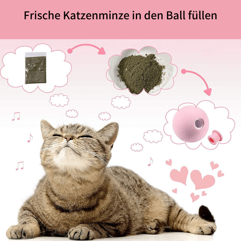 Füll einfach etwas Katzenminze in den Ball. Deine Katze wird es lieben! So wird ihr natürlicher Spieltrieb angeregt und sie ist glücklich.