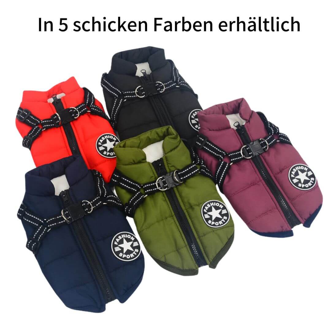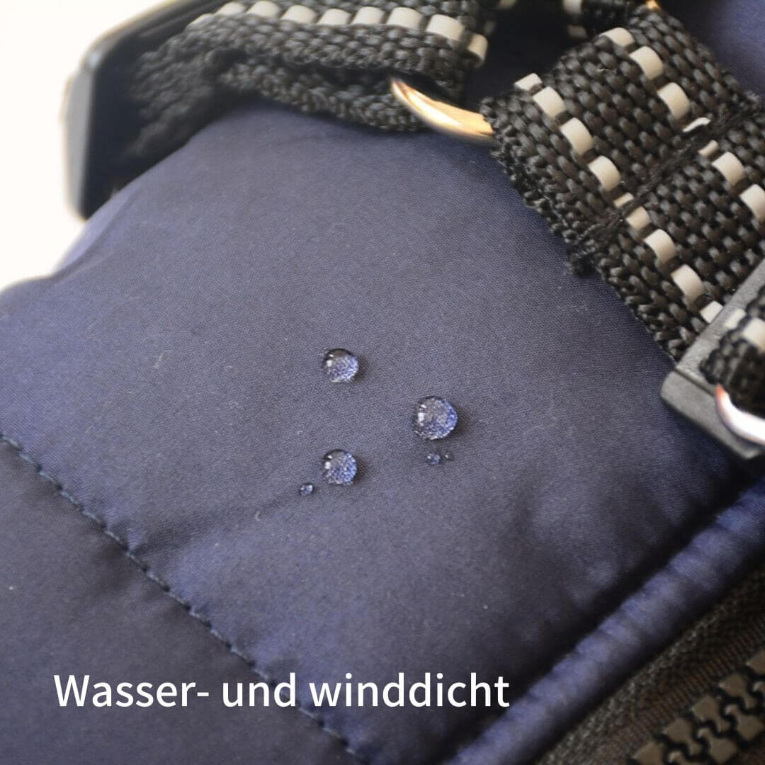 Hochwertiges Premiummaterial hält Deinen Liebling warm und trocken. Unsere Jacke ist atmungsaktiv und winddicht. Zusätzlich werden die Nieren und der Bauch Deines Hundes warmgehalten und vor Kälte und Nässe geschützt.